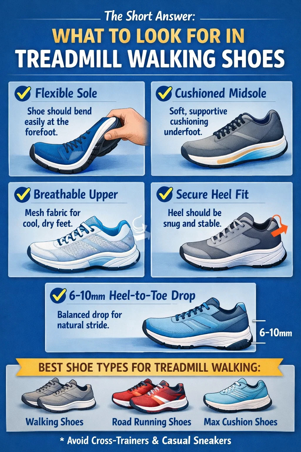 Esta guía desglosa exactamente qué características importan, qué tipos de zapatos funcionan mejor para diferentes caminantes y cómo combinar un zapato con su modo de andar y forma de pie específicos, para que sus sesiones en la cinta de correr sean lo más cómodas y efectivas posible.
