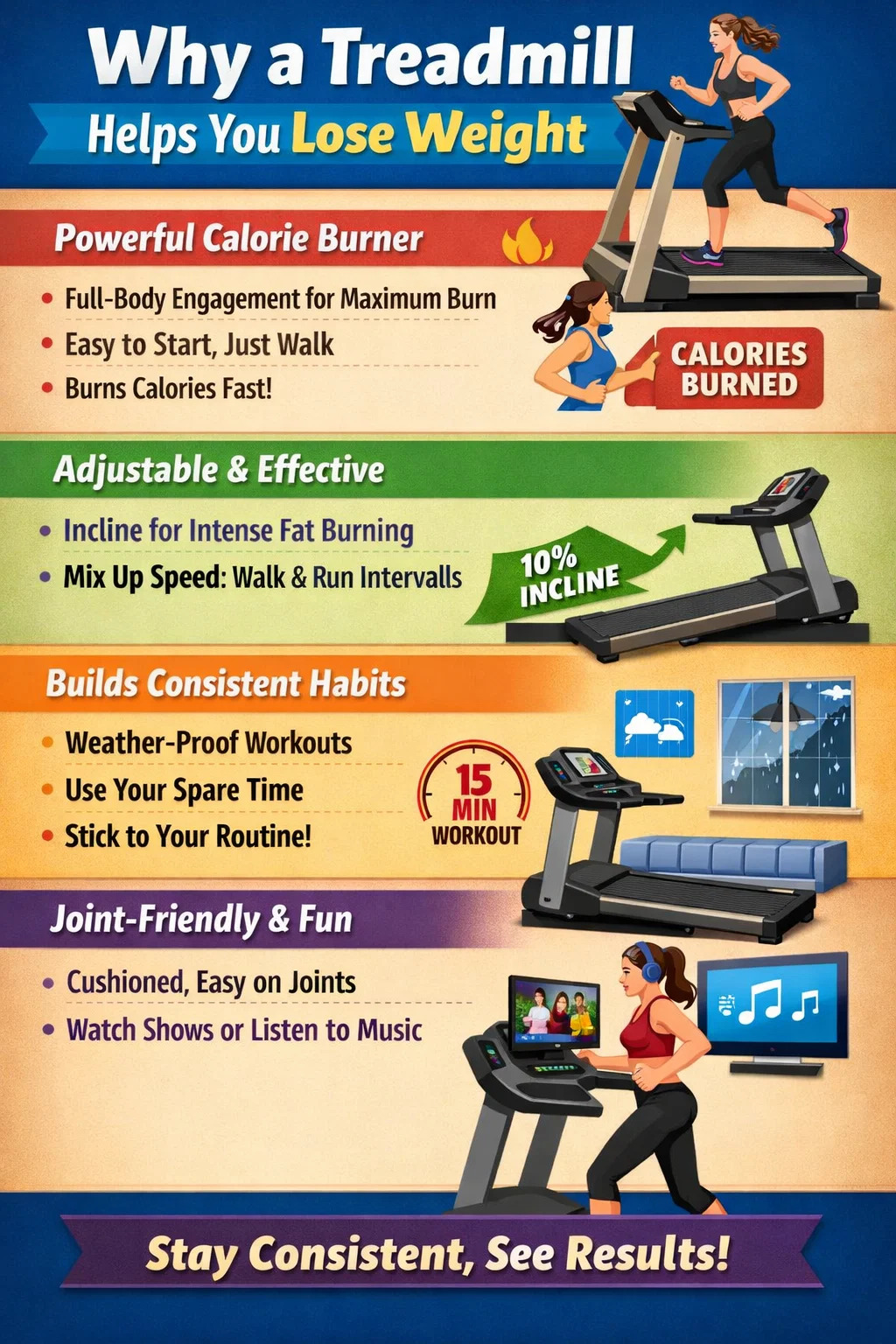 Estas son algunas de las razones principales por las que un cinta de correr puede ayudarte a perder peso de forma eficaz, junto con algunos consejos prácticos: