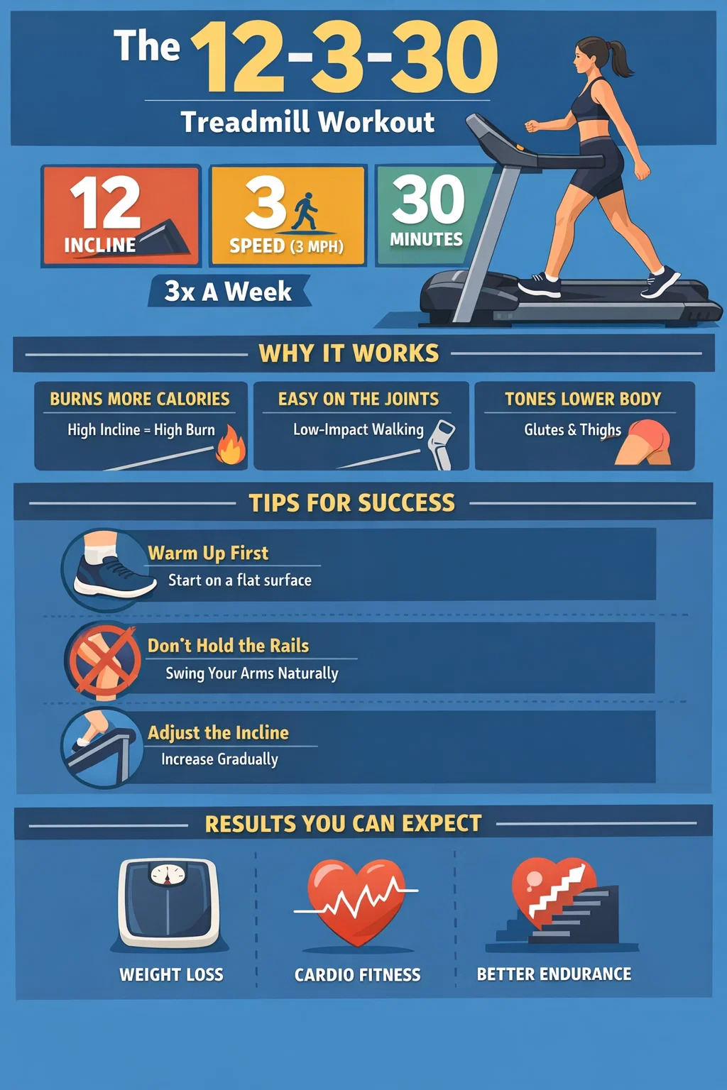 La "regla de los 30" que mencionaste, que es muy popular en cintas de correr , suele referirse al método de entrenamiento "12-3-30" que se ha vuelto viral en las redes sociales.