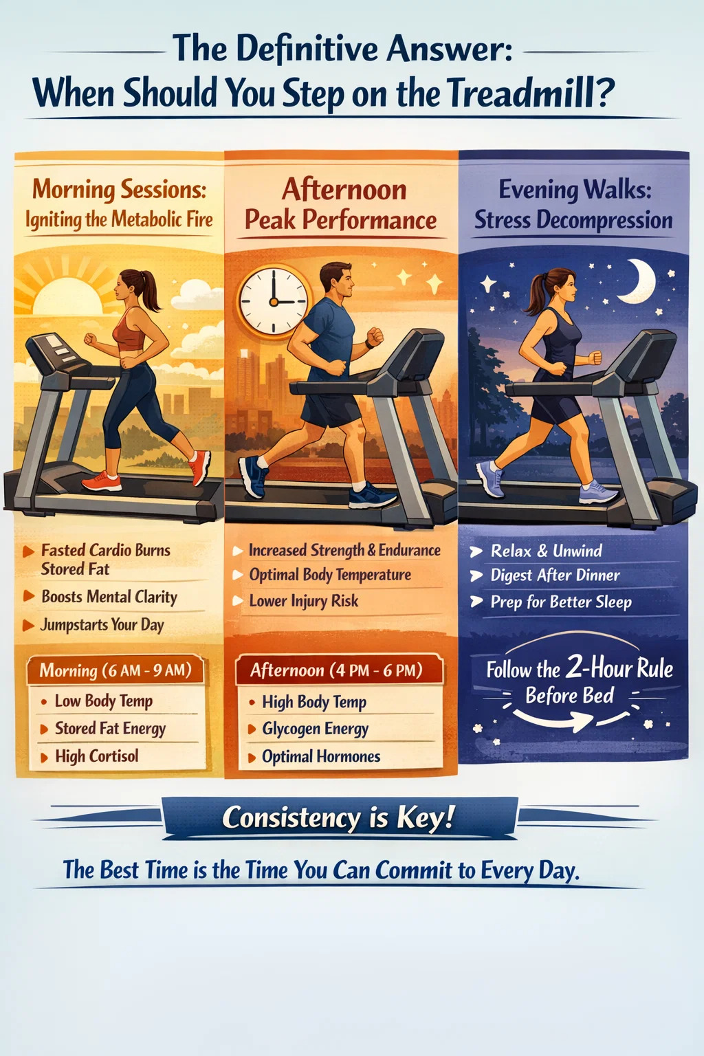 En última instancia, el mejor momento para caminar sobre una cinta de correr es cuando te sientes con más energía. Presta atención a las señales de tu cuerpo durante una semana: si te sientes lento por la mañana pero vibrante a las 5:00 p.m., ese horario de la tarde es tu "hora dorada" personal para estar en forma.